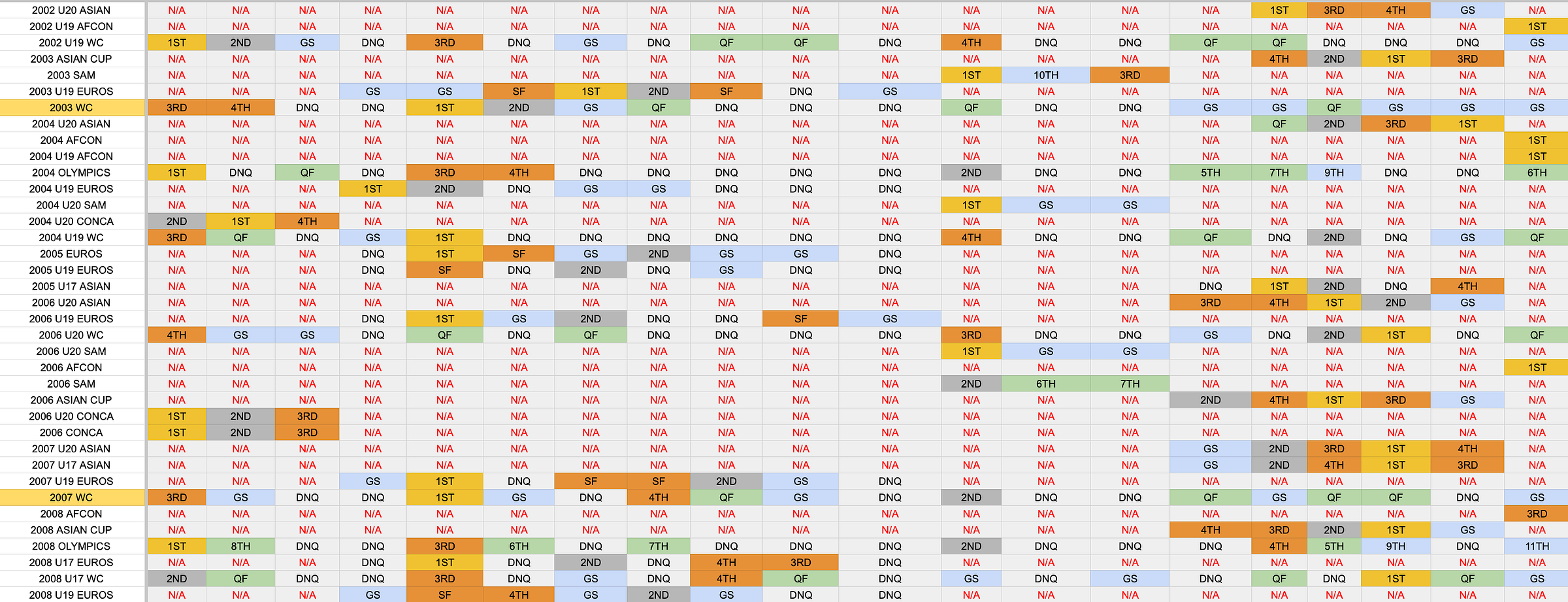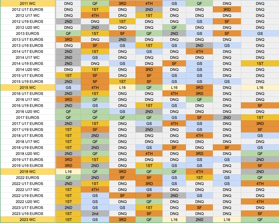 Some people will claim that youth tournament results mean everything. Some will claim they mean nothing. The reality probably lays somewhere in the middle - they don’t mean everything, but they definitely mean something. Some ways to attempt to figure out what they mean, is to look for long term trends, to track individual player transition to senior competition, to identify outlier cohorts v a sustained depth of talent, and to watch the games to figure out why teams are actually winning.